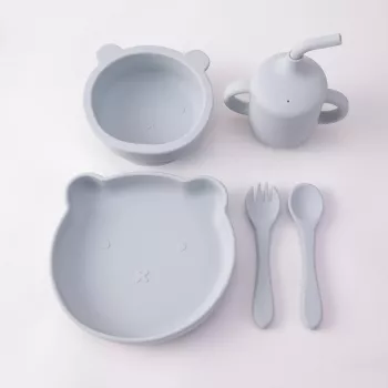 5PCS Silicone Baby Feeding Set with Bear Plate, Spoon & Straw Cup